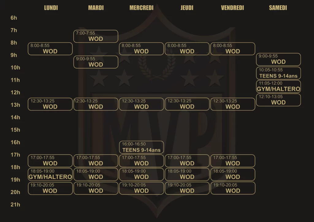 Le CrossFit a été construit autour d’un seul et unique objectif : améliorer votre santé plus vite, mieux, et pour plus longtemps qu’avec les autres méthodes de travail ou les autres pratiques sportives. Vous serez guidé et accompagné par vos coachs, et encouragé par vos partenaires : le cadre idéal pour atteindre vos objectifs dans la bienveillance et sans pression !